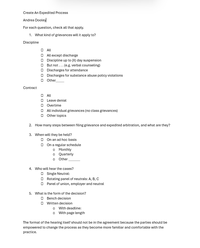 Creating Your Expedited Arbitration Process