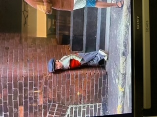 Next, let’s head to 1985 when Spenser: For Hire was just debuting. Before the opening credits of the episode “Choices,” Spenser is in his Mustang chasing a white van which a cop on his radio calls “the kidnappers from Brookline.” The cars race back and forth in front of a stoop that an old woman is sweeping. Leaning in the doorway is this dapper gentleman.